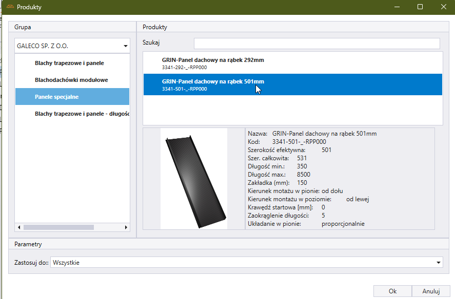 Special panels is a product definition similar to Trapezoidal sheets and panels. The main difference relates to the possibility of combining different types of products from the Special Panels group on a single slope.