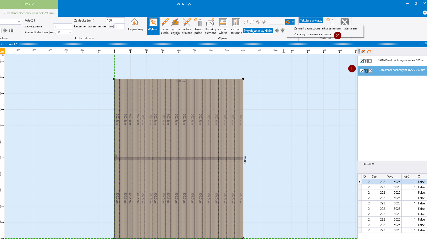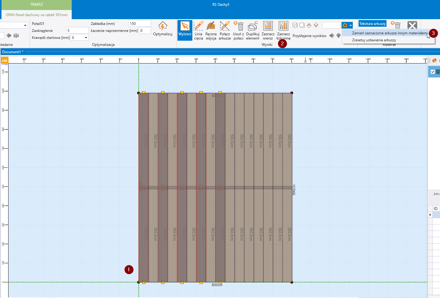 The conversion of special panel sheets to other products is only possible in terms of whole columns or sheet rows. To do this, you need to: