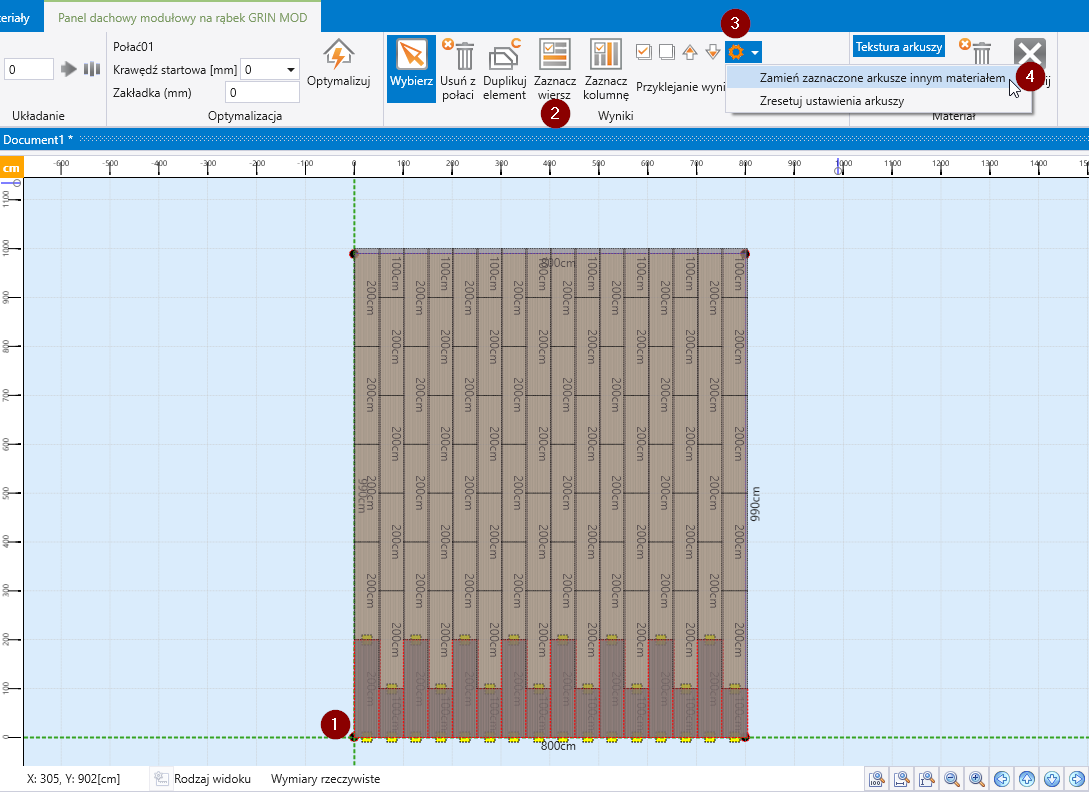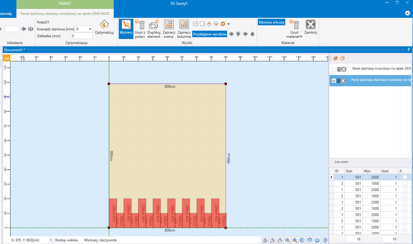 For coverings of type Trapezoidal sheets and panels - standard lengths, 2 products can be combined on one slope. An example of the use of this functionality is the calculation of starter panels.