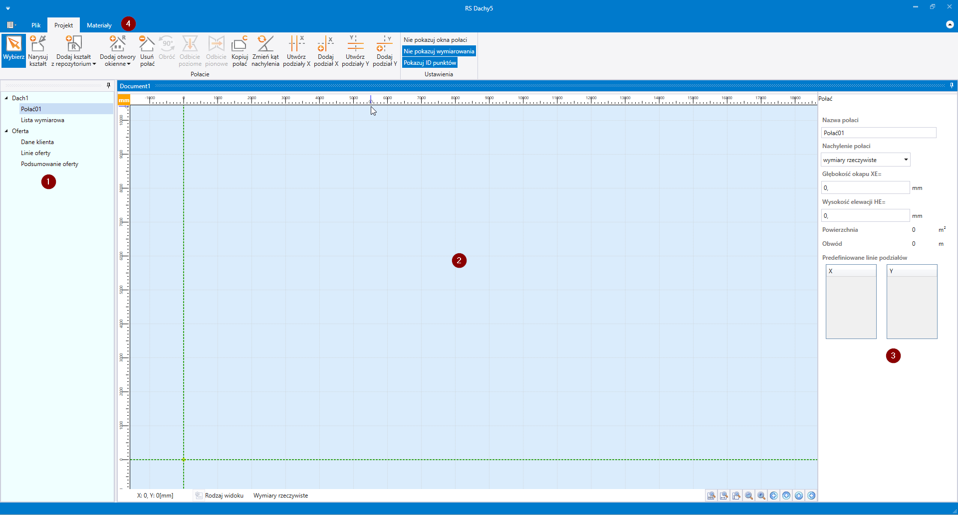 - Installation drawings - section with drawings of the location of the sheets on the slopes, this section is not available in the free open version. There are 2 versions of the drawings "A3 horizontal" and "A4 horizontal". The A3 version is recommended for large objects and when the quotation is sent electronically in PDF format. Drawings in this format are more legible.