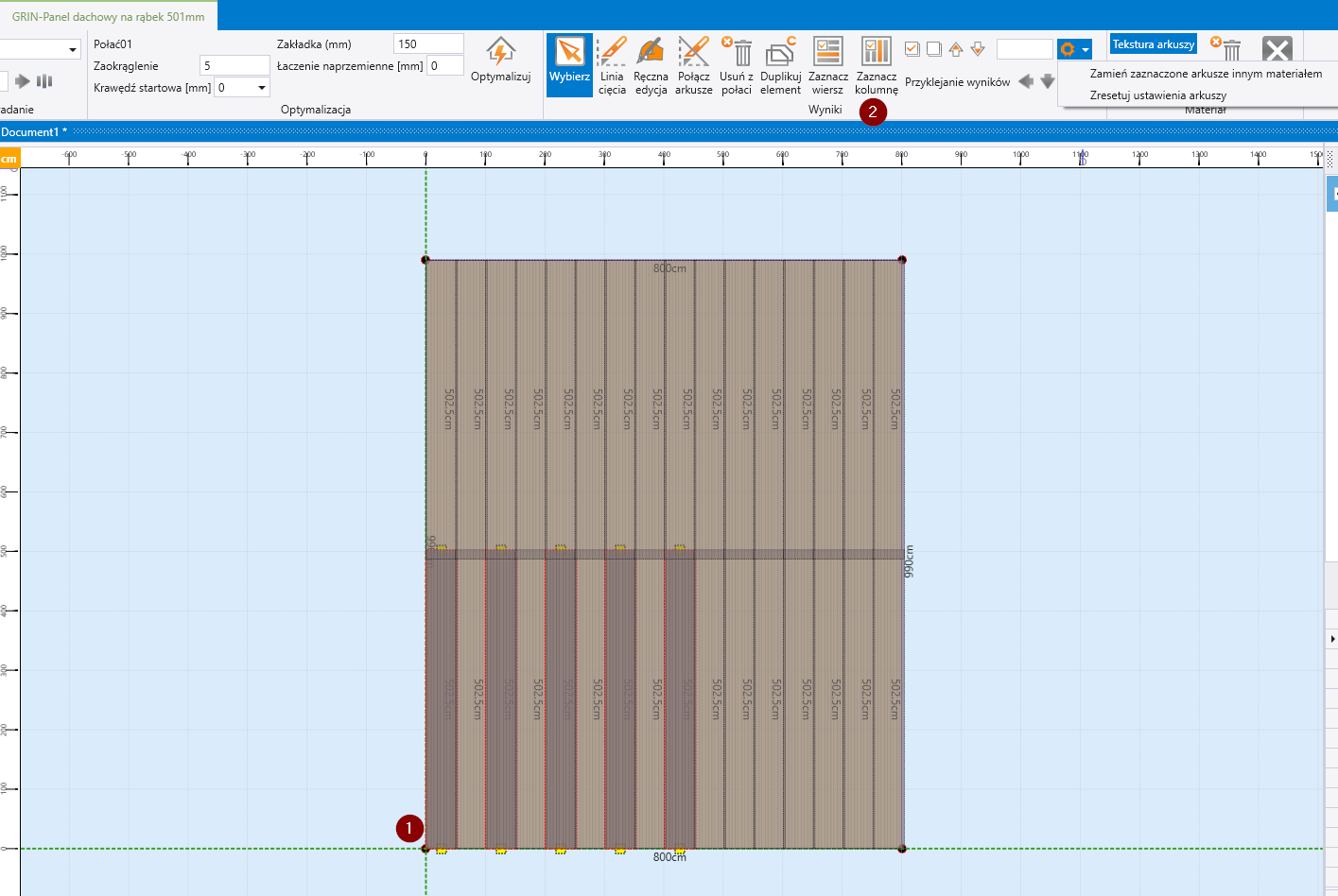 Zamiana arkuszy panela specjalnego na inne produkty jest możliwa tylko w zakresie całych kolumn lub wierszy arkuszy. W tym celu należy: