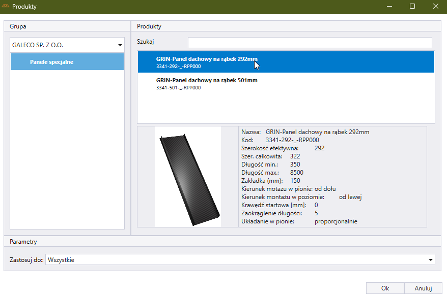 Mając dodany panel specjalny na połaci, można dodać do niego produkty zbliżone do tego typu. Szerokość krycia panela moży być inny