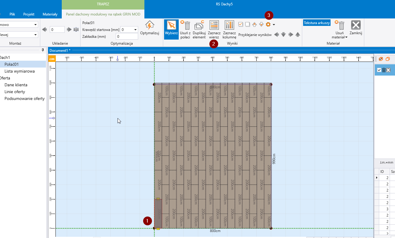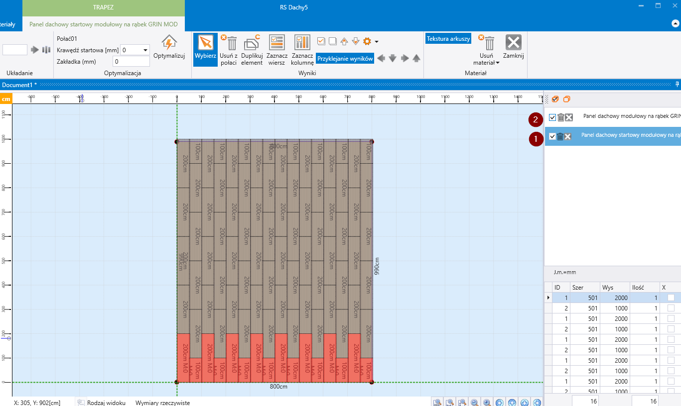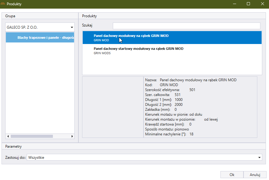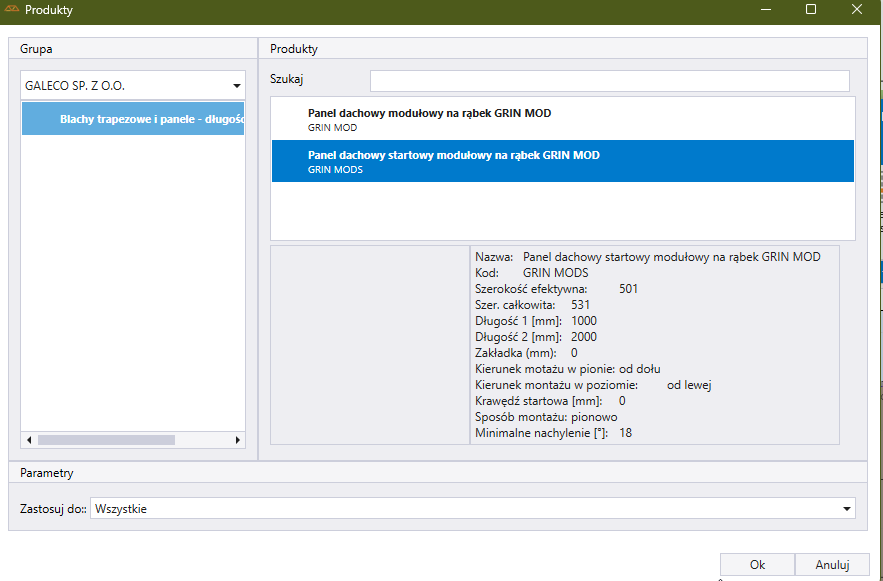 Dodać do połaci produkt podstawowy z grupy Blachy trapezowe i panele - długości standardowe