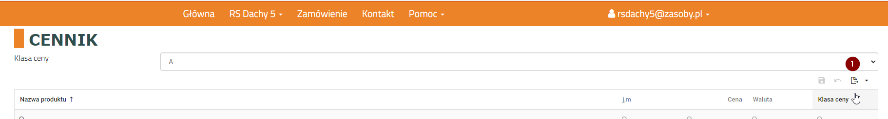 Aby wyeksportować plik cennika do Excela należy wybrać akcję eksportu danych. Plik z cennikiem zostanie automatycznie pobrany przez przeglądarkę internetową.