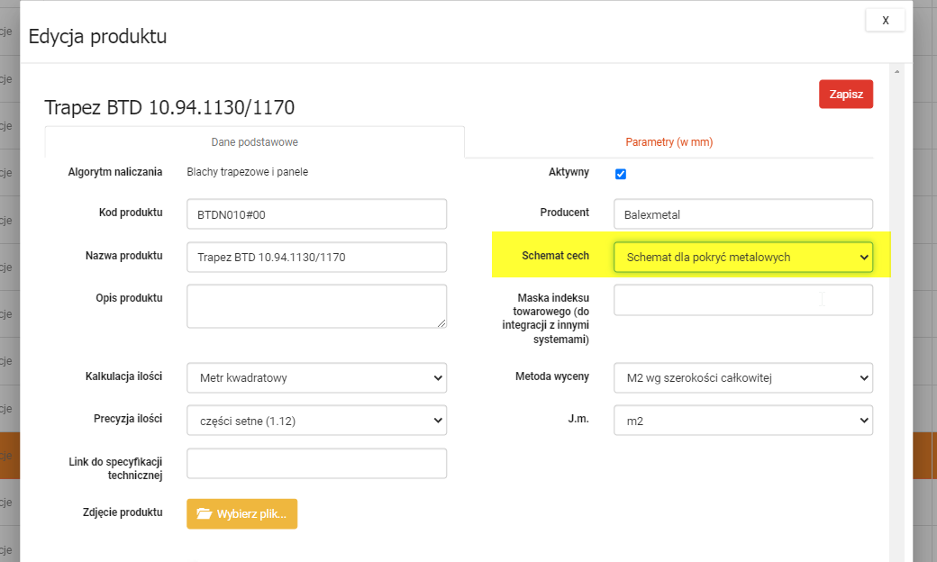 Następnie w słowniku produktów dla każdego z produktów można przypisać nowo utworzony schemat.