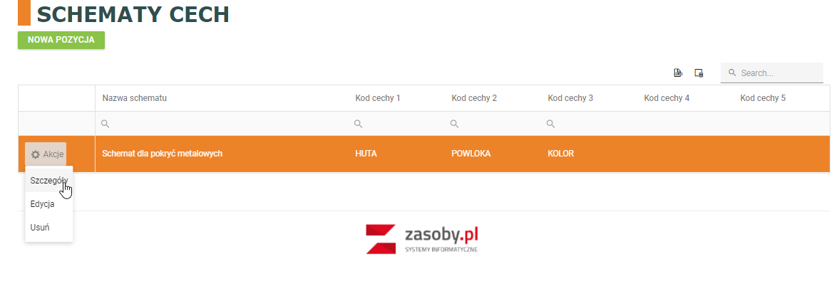 Aby dodać nowy schemat należy wybrać przycisk NOWA POZYCJA