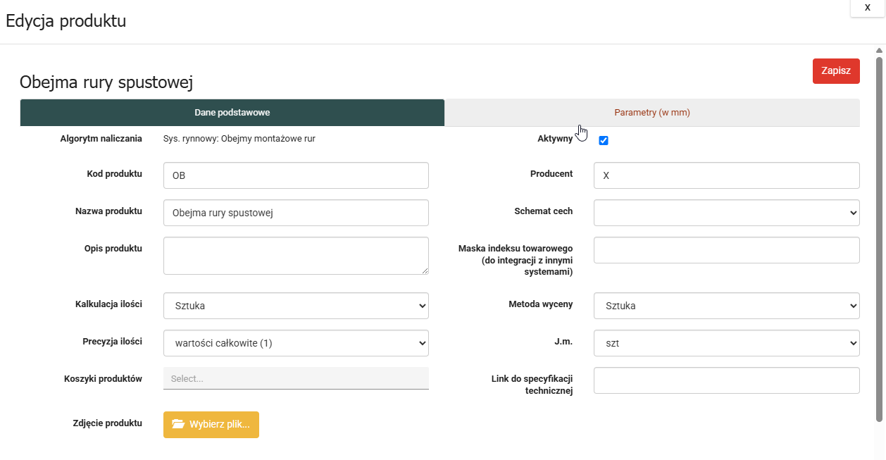 Obejmy montażowe rur służą do przymocowania rur do elewacji. Mogą ro być obejmy, śruby i inne elementy wchodzące w skład zestawu montażowego. Każdy element jest montowany na początku i na końcu rury. Dodatkowo jeśli długość rury spustowej przekracza określoną w parametrze Maksymalna odległość między elementami zostanie dodany dodatkowy element montażowy. Jeśli długość rury wynosi 4,5m a odległość między elementami wynosi 2m (2000mm), to zostaną dodane 2 elementy montażowe.