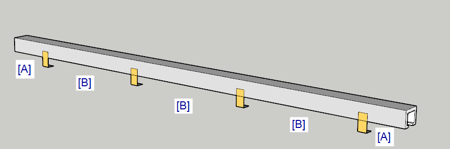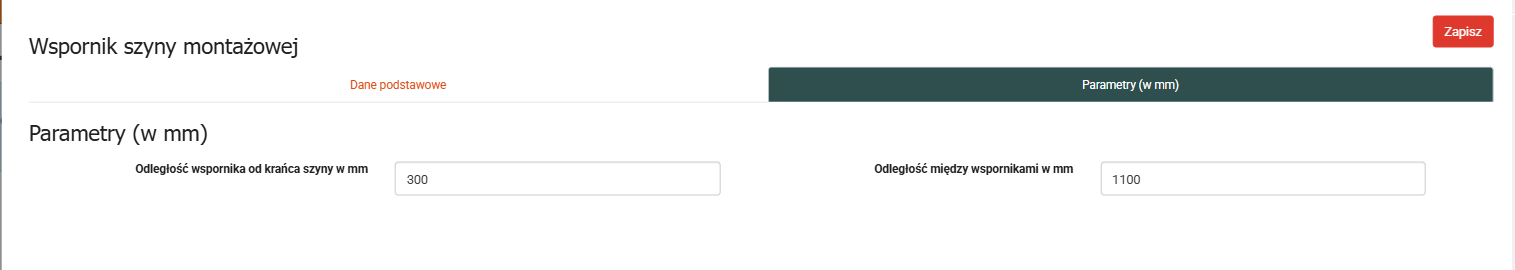 - Odległość wspornika od krańca szyny w mm - parametr określa w jakiej odległości od krańca szyny powinien być umieszczony wspornik (wartość w mm) [A]