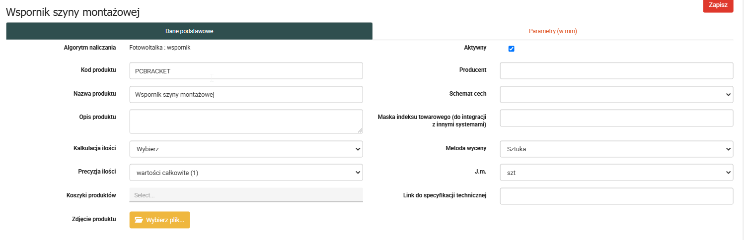 - Odległość między wspornikami w mm - parametr określa minimalną odległość między wspornikami (wartość w mm) [B]