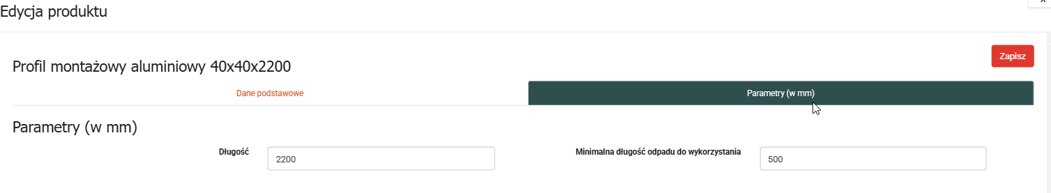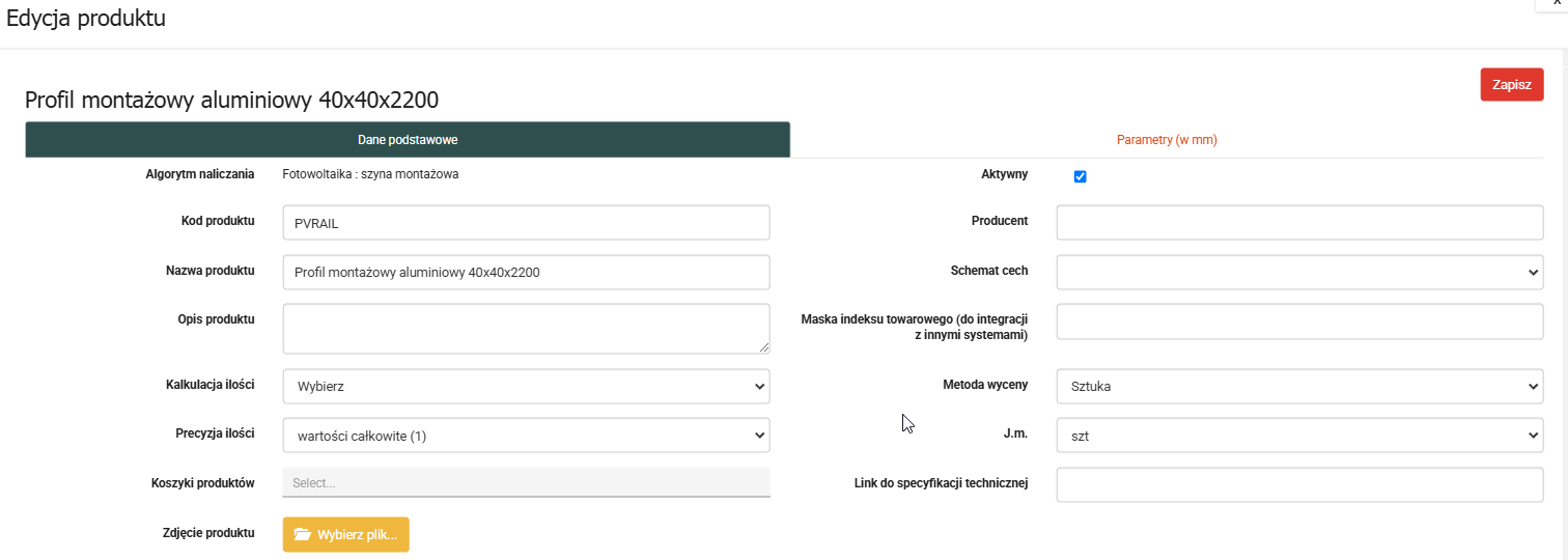 Zakładka -Parametry-