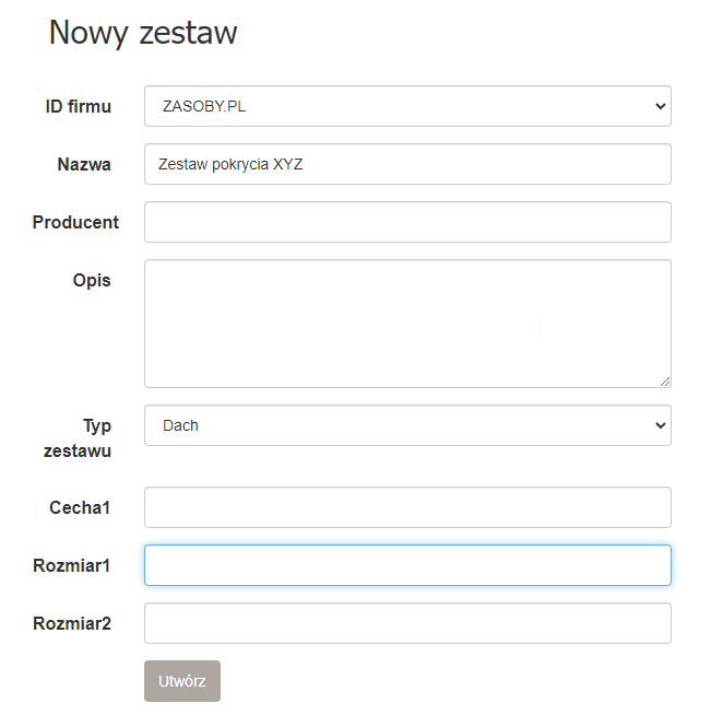 Aby dodać nowy zestaw należy wybrać przycisk Nowy zestaw i wypełnić podstawowe pola :